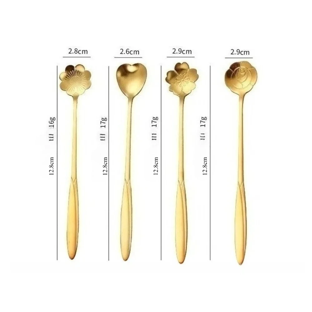 Add a touch of elegance to your dining table with this set of flower-shaped tea and coffee spoons. Made from durable stainless steel, these spoons are sturdy, long-lasting, and resistant to rust. Each set includes 8 or 16 pieces, perfect for family gatherings or tea parties. The charming flower design adds a decorative flair to any table setting. Ideal for stirring tea, coffee, sugar, or other beverages, they are both functional and stylish. Lightweight and easy to handle, they make stirring effortless and enjoyable. These spoons are easy to clean and maintain, making them practical for everyday use. Perfect for use at home, cafes, or parties, they enhance the overall dining experience. Their polished finish gives a sleek and modern look to your kitchenware collection. Upgrade your tea and coffee rituals with this beautiful and practical spoon set.