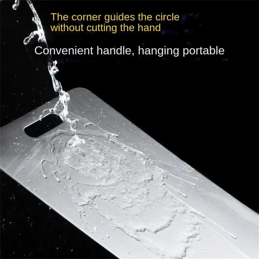 This stainless steel cutting board is designed for durability and efficient food preparation. It features a thickened construction for added strength and stability during use. The double-sided design allows you to separate foods like meat and vegetables for better hygiene. Made from food-grade material, it ensures safe and clean cutting every time. The smooth surface is easy to clean and resists stains and odors. It is perfect for chopping fruits, vegetables, and meats with ease. The sturdy design helps prevent slipping while cutting. It is ideal for both home kitchens and professional use. The compact and sleek design fits well in any kitchen space. Upgrade your food prep routine with this reliable stainless steel cutting board.